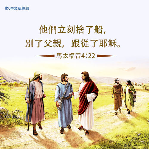 他們立刻捨了船,別了父親,跟從了耶穌。