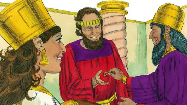當日,亞哈隨魯王把猶大人仇敵哈曼的家產賜給王后以斯帖。末底改也來到王面前,因為以斯帖已經告訴王,末底改是她的親屬。王摘下自己的戒指,就是從哈曼追回的,給了末底改。以斯帖派末底改管理哈曼的家產。以斯帖又俯伏在王腳前,流淚哀告,求他除掉亞甲族哈曼害猶大人的惡謀。亞哈隨魯王對王后以斯帖和猶大人末底改說:因哈曼要下手害猶大人,我已將他的家產賜給以斯帖,人也將哈曼掛在木架上。現在你們可以隨意奉王的名寫諭旨給猶大人,用王的戒指蓋印;因為奉王名所寫、用王戒指蓋印的諭旨,人都不能廢除。三月,就是西彎月二十三日,將王的書記召來,按著末底改所吩咐的,用各省的文字、各族的方言,並猶大人的文字方言寫諭旨,傳給那從印度直到古實一百二十七省的猶大人和總督省長首領。